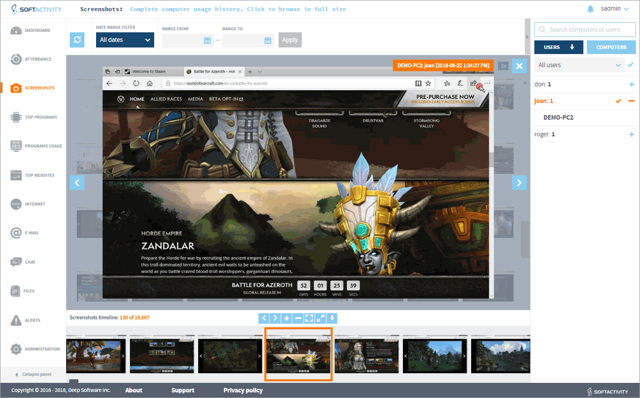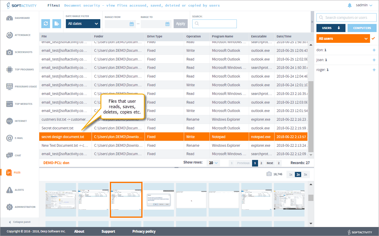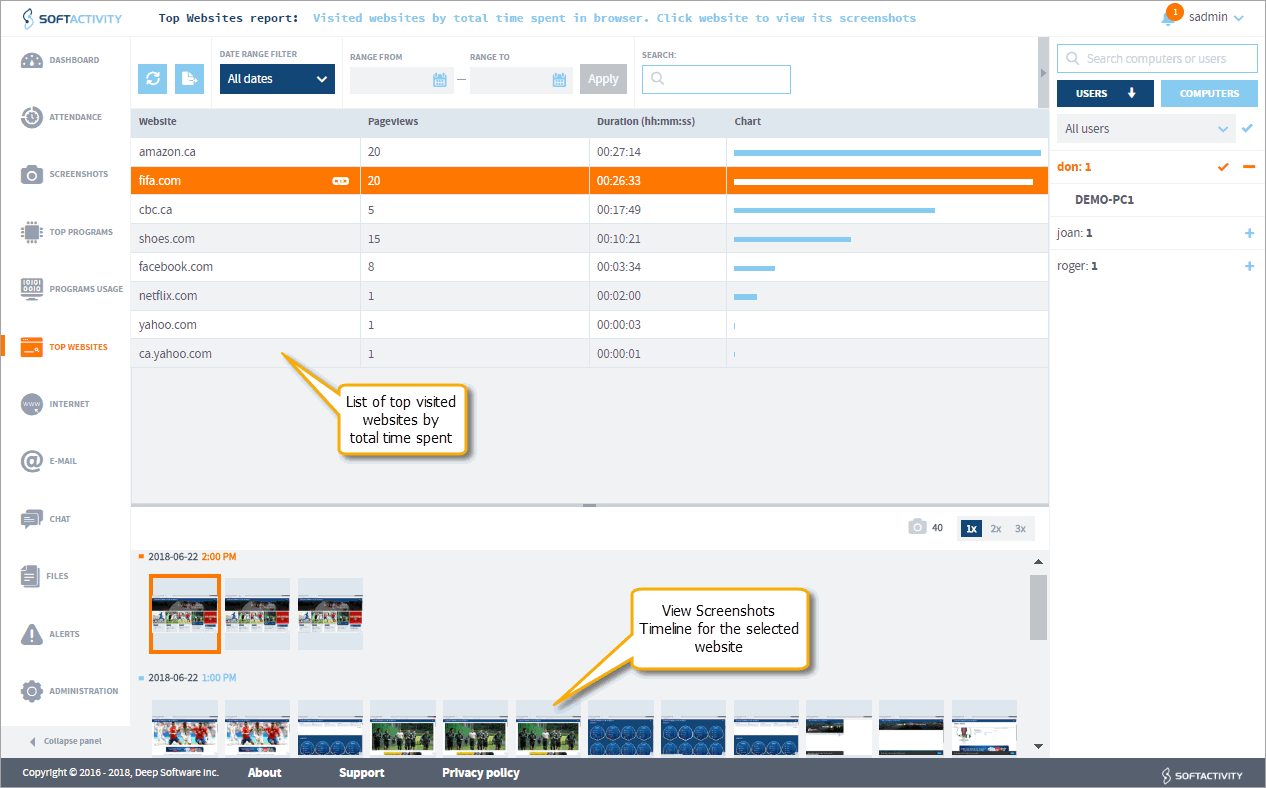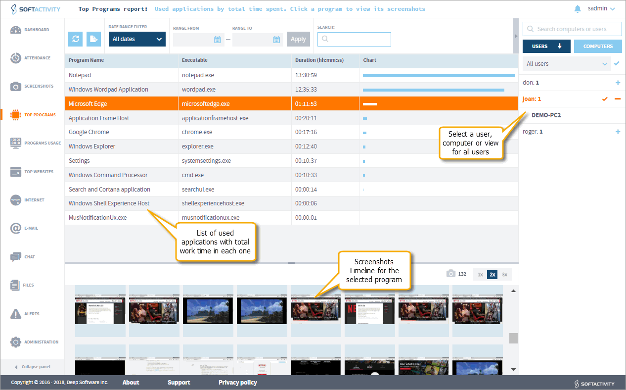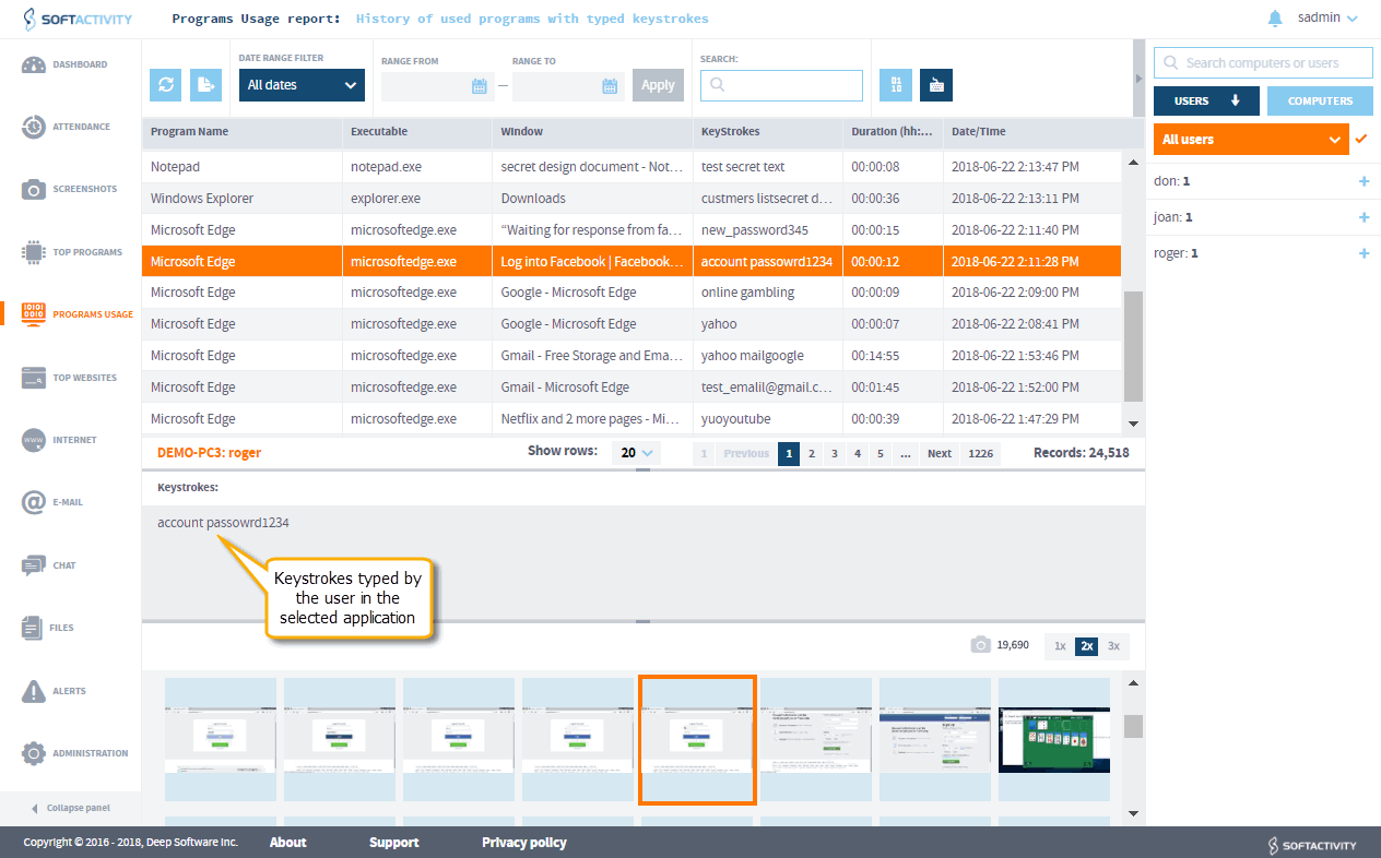 SoftActivity records all your employee’s data - in depth!